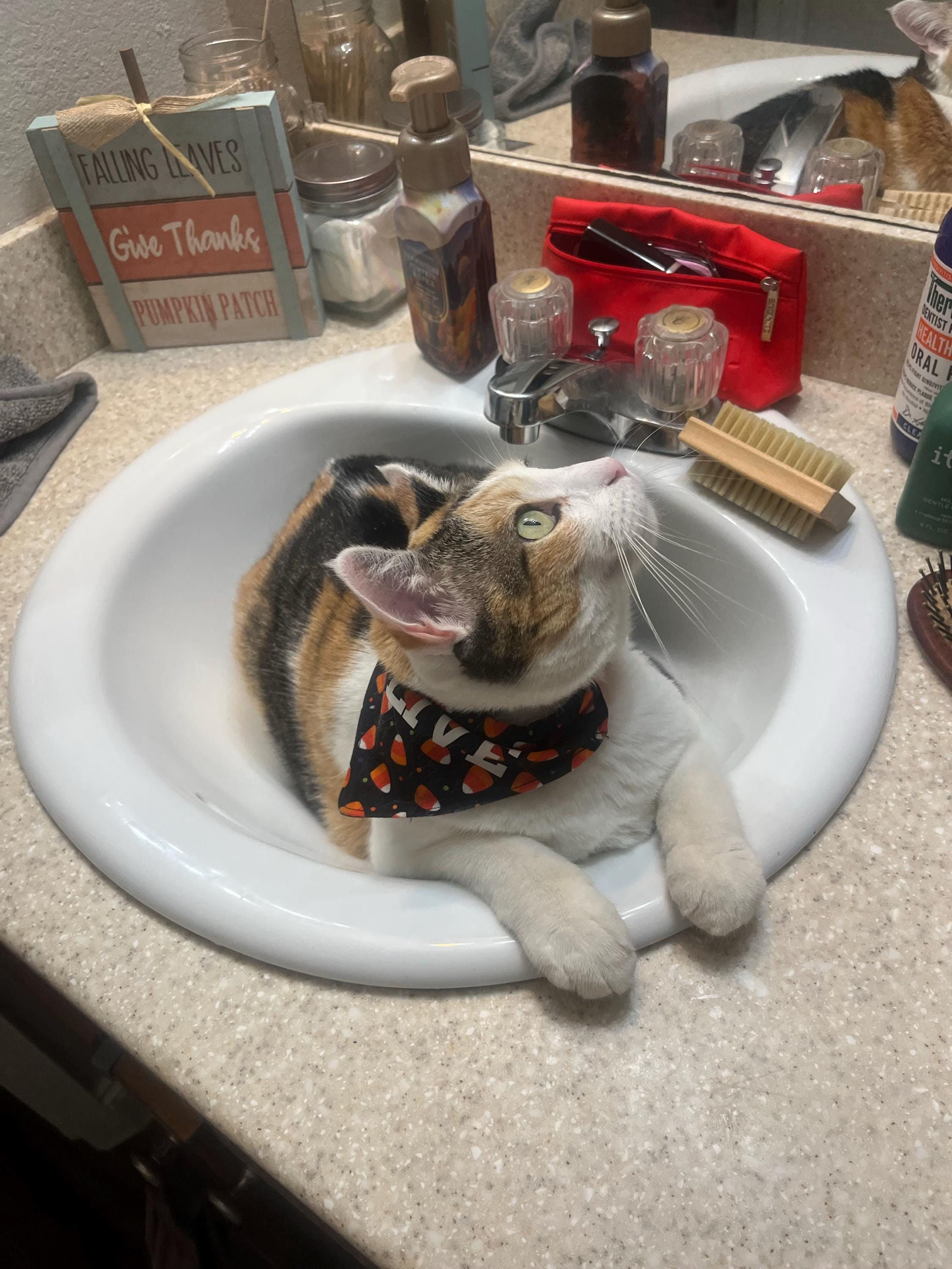 See the size chart to choose the proper bandana size for your pet. Review the fabric pattern chart for various options in colors and prints, both for dogs and cats. You can also personalize your scarf with their name or saying in a variety of vinyl colors and fonts. Note print/ pattern placement will vary for each handmade item.
